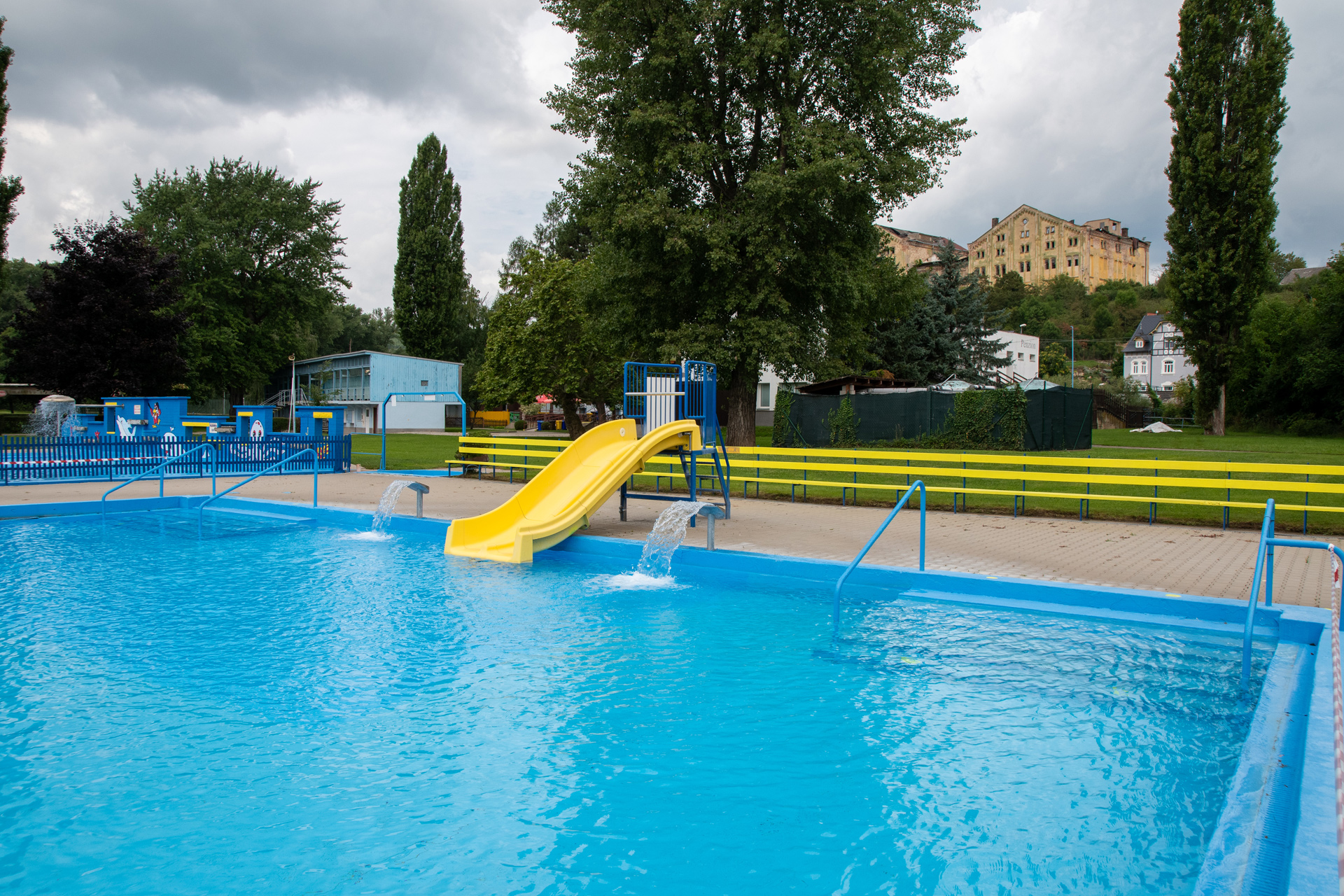 8. 5. – 31. 5. a 1. 9. – 15. 9. v provozu dva bazény s přihřívanou vodou a sportoviště.